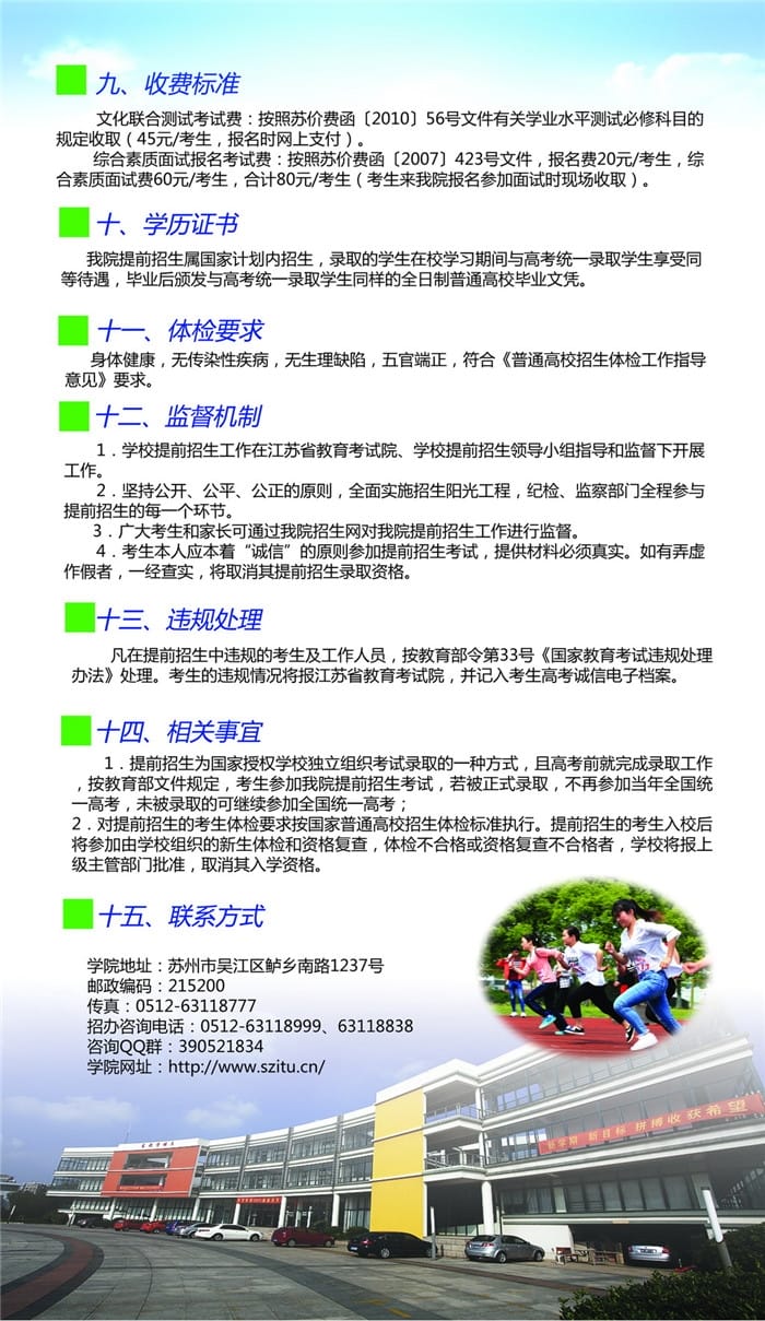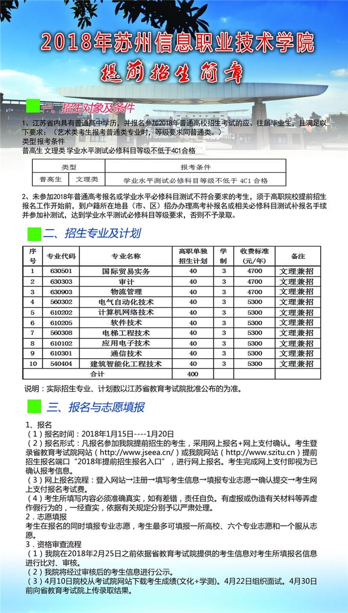 苏州信息职业技术学院2018提前招生简章